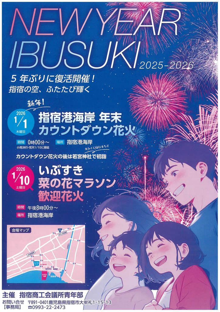 2026年1月10日には日本一早い民間マラソン大会「いぶすき菜の花マラソン」歓迎花火も開催!